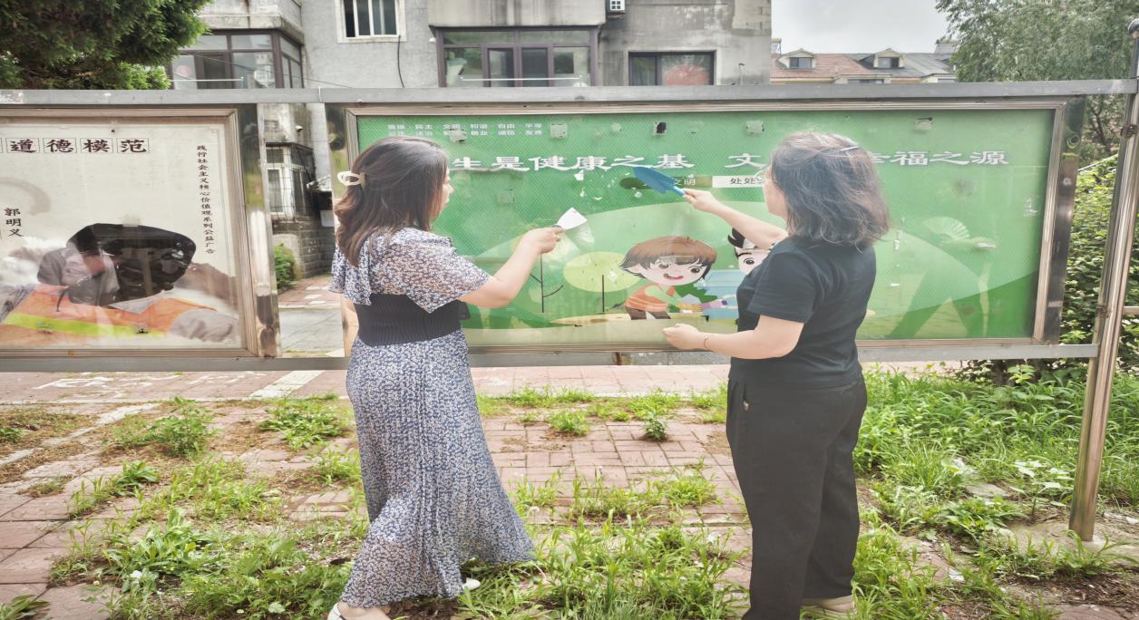 在活动中,党员教师们精神饱满、热情高涨,对社区公共区域及楼道内乱张贴、乱涂写的小广告展开集中清理。全体党员教师分工协作,使得社区公共空间面貌焕然一新,有效恢复了社区环境的整洁美观。