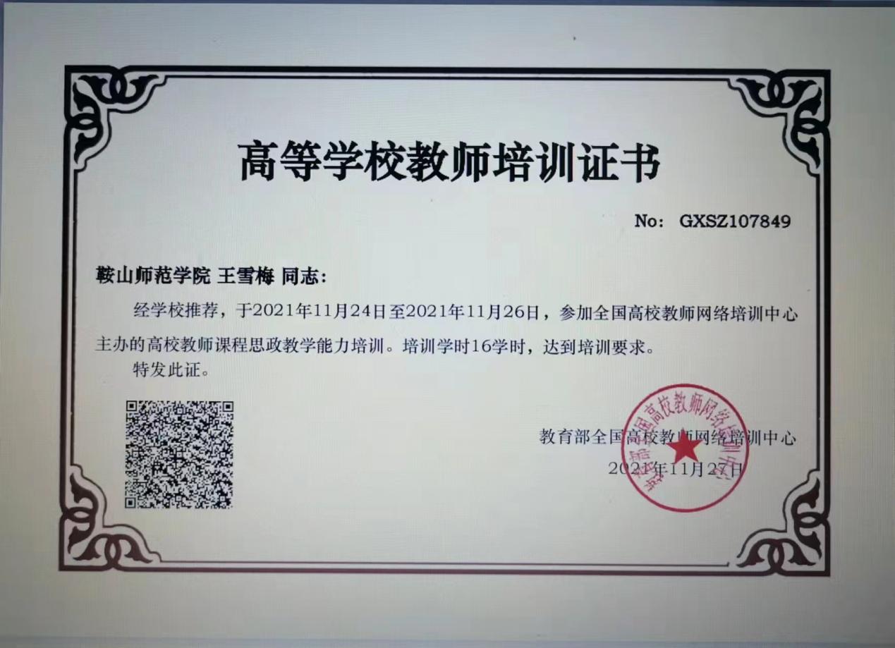 (五)20211124日至20211126日参加全国高校教师网络培训中心主办的高校教师课程思政教学能力培训