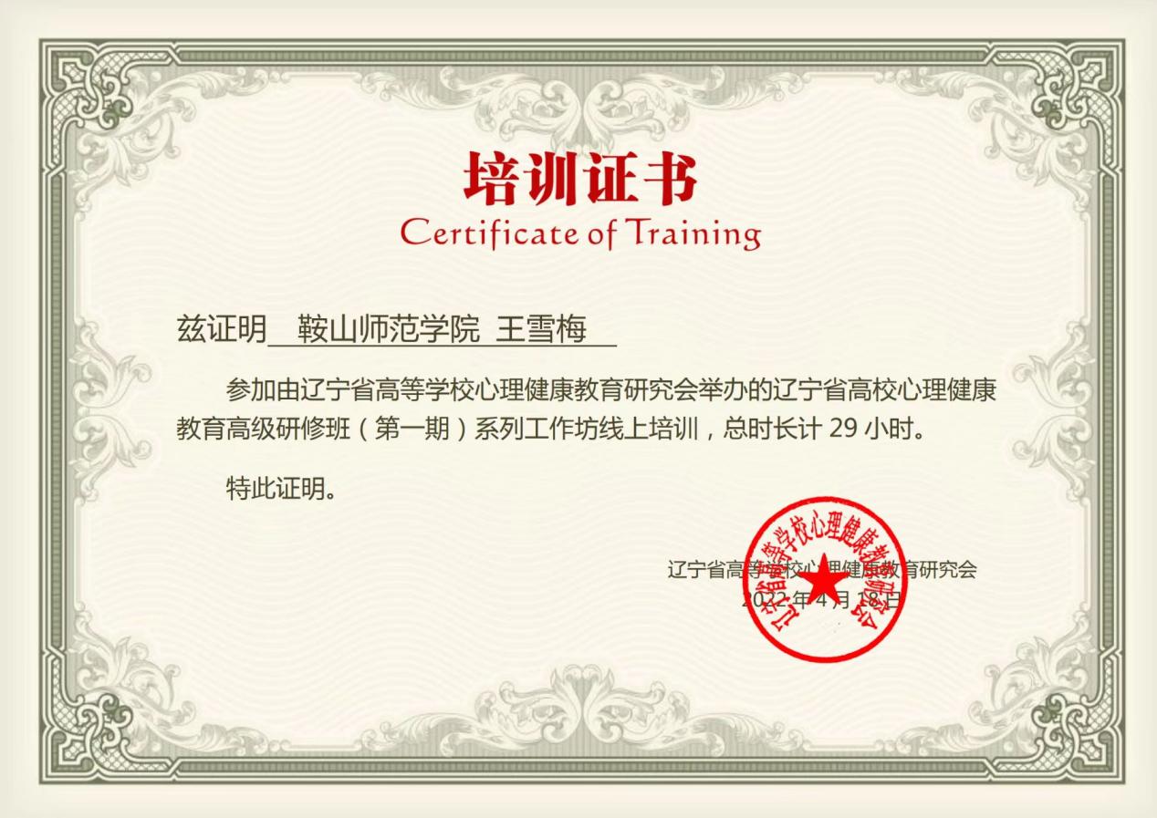 (三)参加由辽宁省高等学校心理健康教育研究会举办的辽宁省高校心理健康教育高级研修班。2022418