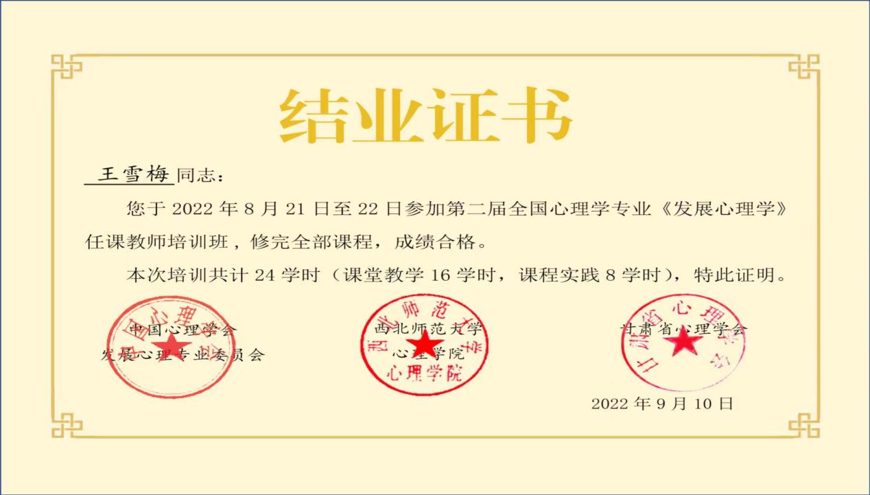 (四)2022821日至22日参加第二届全国心理学专业发展心理学任课教师培训