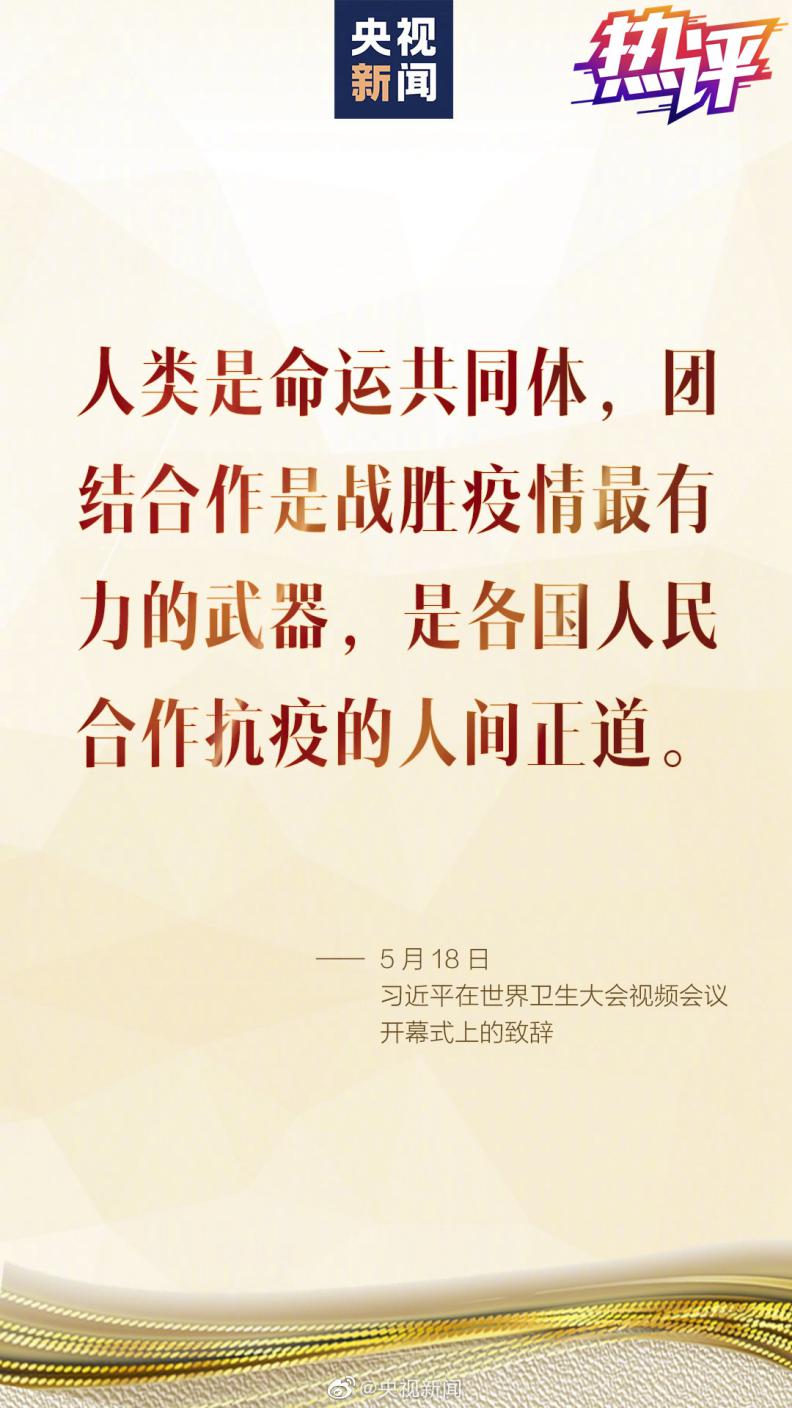 北京时间5月18日晚,习近平主席在第73届世界卫生大会视频会议开幕式上致辞。这篇1700余字的致辞,阐述了中国的抗疫主张,体现了对科学规律的尊重,提出了全球团结合作抗疫的积极倡议。
