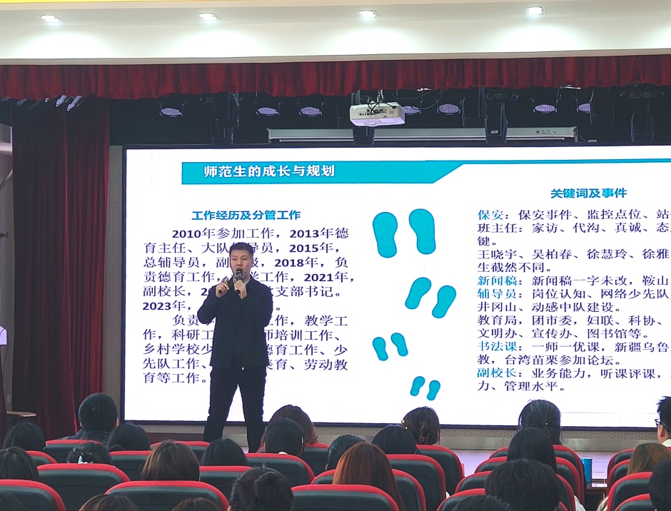 春意盎然的3月,388vip太阳集团教育科学与技术学院迎来了一场关于师范生成长与使命的深刻对话。为深化师范专业人才培养,赋能学子职业发展,学院特邀请鞍山经济开发区达道湾镇小学中心校书记、校长丁超为同学们作“师范生的成长与规划”主题讲座。