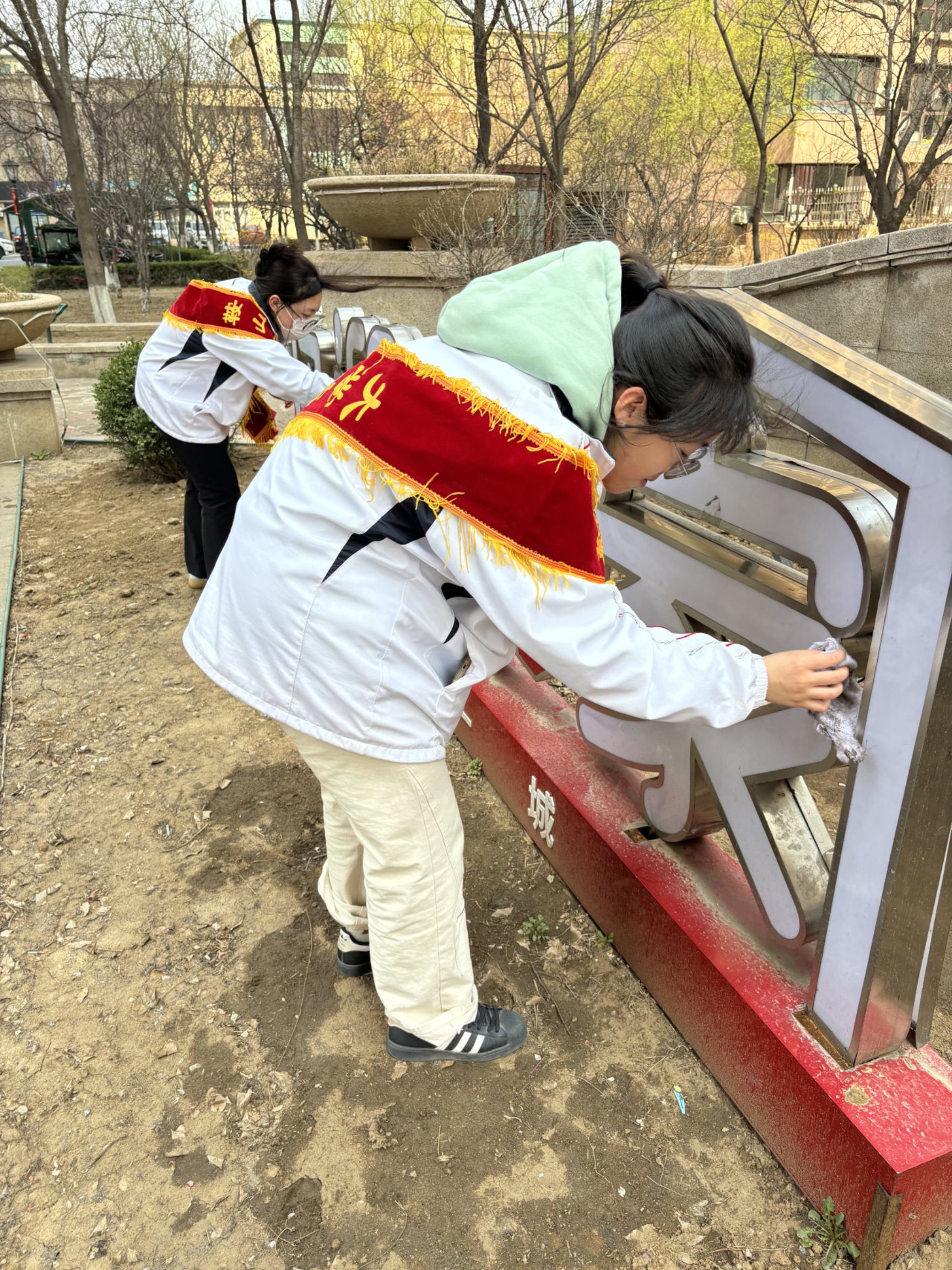 此次活动开展中带领志愿者分组、分区进行社区不同区域分工合作拾取被随意丢弃垃圾的劳动,分组进行擦拭广告牌等。活动过程中志愿者们充分发扬了,不怕脏、不怕累、肯吃苦的劳动精神。尽管大风天气,大家参与活动的热情却丝毫未减,甚至认真负责地清扫自己分配的区域。