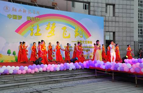 由教育科学与技术学院第七届学生联合会承办的“中国梦,我的梦,让梦飞翔”主题文艺晚会于14年6月于我校理化实验楼露天舞台处举办。整场晚会倾注了全院师生的热情与活力,共同筹备了近两月为全校师生呈现了一台精彩绝伦的演出。
