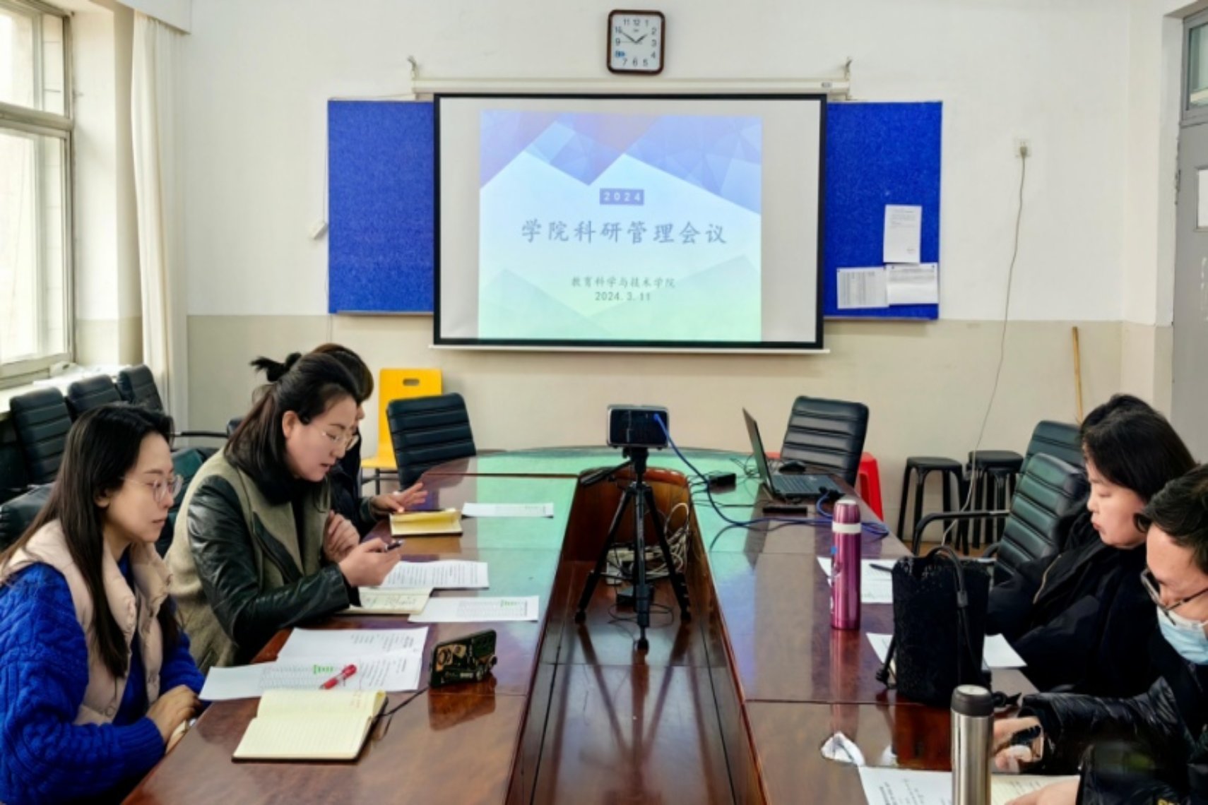 为进一步推进教育科学与技术学院的学科建设,构建科研活动的基层组织,推动学院科研工作持续、快速、健康发展。近日,教科院在会议室开展2024年第一次学院科研管理工作会议。