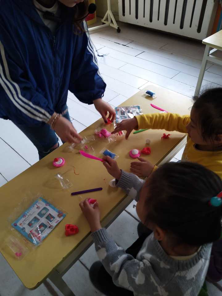教科院学子本周安排的活动教给大班的是用橡皮泥制作美味的冰淇淋,教给托班的泥彩小动物是小熊。泥彩的塑造除了运用“揉、捏、搓、切”等一些玩橡皮泥的基本方法,还需要借助工具来进行进一步的塑造,比如制作形状、按压纹理以及细节部位的处理等等。结合这两者才能将它们塑造成小动物的形态,此次教学我们采用引导式教育,引导孩子们独立完成泥彩的塑造。这样不仅提高了孩子们的创造能力,还让孩子们体验到了独立制作成功的成就感,培养了他们对事物的观察力和想象力,增强了创新意识与信心。同时也让教科学生真正走进幼儿园,在教学中发现自己的不足,为她们毕业之后更好地就业提供机会,同时也将奉献精神在教科院传播开来,让教科的学子既实践了公益活动同时也在实践中收获。