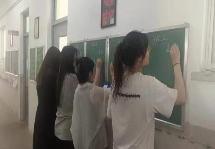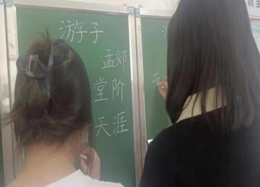 与此同时,在“母亲节”特别活动期间,平日的粉笔字书写训练也将日常古诗词更换为歌颂母爱的经典诗词。在提高师范生汉字书写规范意识、夯实教师技能的同时,让同学们细细感受自古以来流淌在中华儿女心间的伟大母爱。