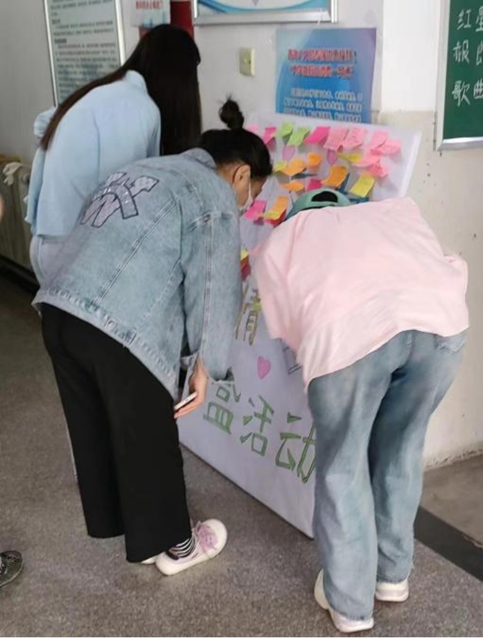5月25日当天,同学们以匿名的形式在便利贴上书写在大学生活中所面临的心理问题,将烦恼和情绪碎片投入所设的“心情盲盒”中,再从盲盒中抽取一张他人的便利贴,在便利贴后面留下自己的解答与鼓励,最后将便利贴贴在展板上进行展示。同学们可以随时通过展板,查看其他同学给自己的留言。通过抽取“心情盲盒”,同学们与他人交换心情,传递爱和温暖,让美好与温暖相遇,一起和焦虑说“byebye”。