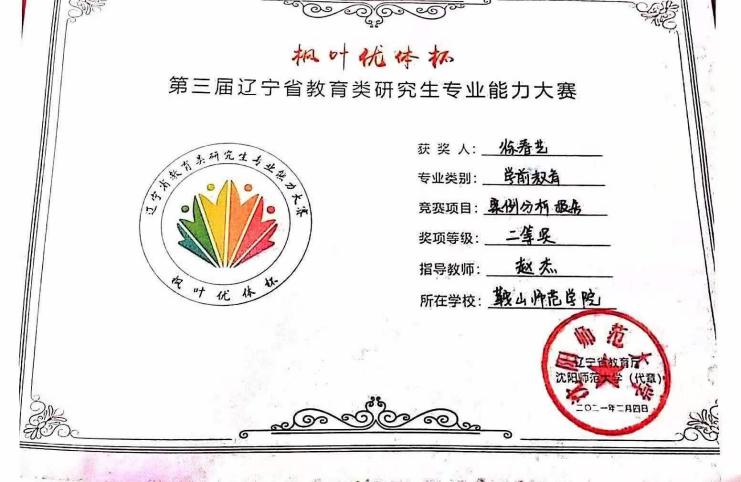 4.2022年指导学生于枫叶优体杯第四届辽宁省教育类研究生专业能力大赛荣获二等奖