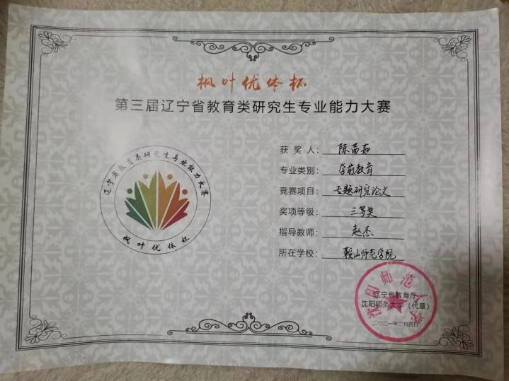 3.2021年指导学生于枫叶优体杯第三届辽宁省教育类研究生专业能力大赛荣获三等奖