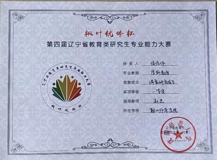 5.2022年指导学生于枫叶优体杯第四届辽宁省教育类研究生专业能力大赛荣获一等奖