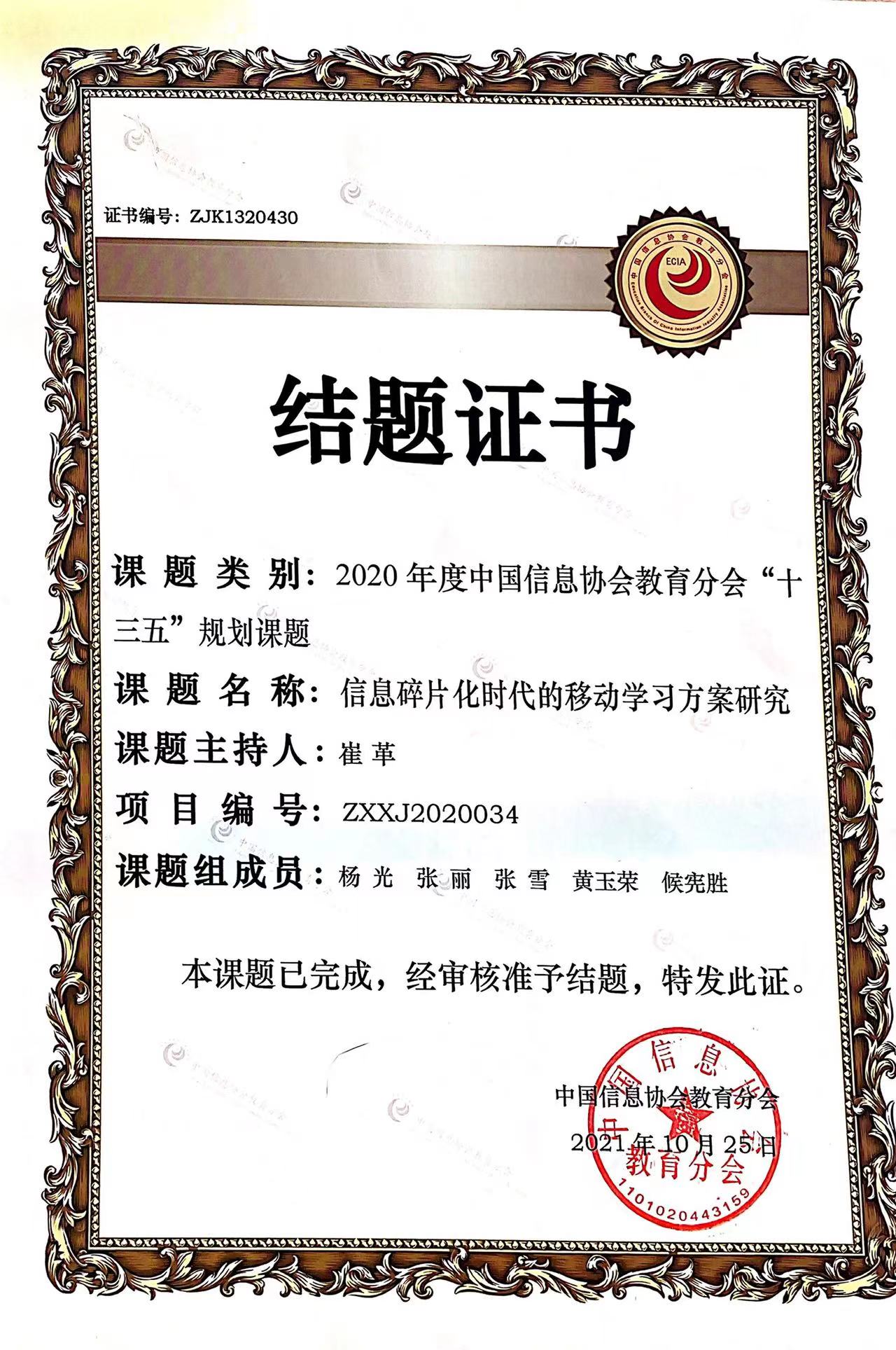 3.在2021年通过2020年度中国信息协会教育分会“十三五”规划课题。