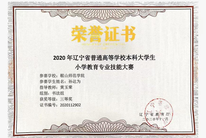 7.在2020年指导学生在辽宁省普通高等学校本科大学生小学教育专业技能大赛荣获三等奖