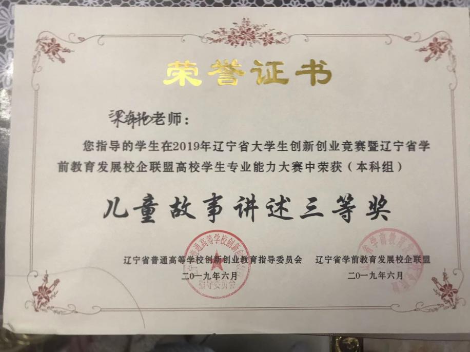 年指导学生辽宁省大学生创新创业竞赛暨辽宁省学前教育发展校企联盟高校学生专业能力大赛中荣获