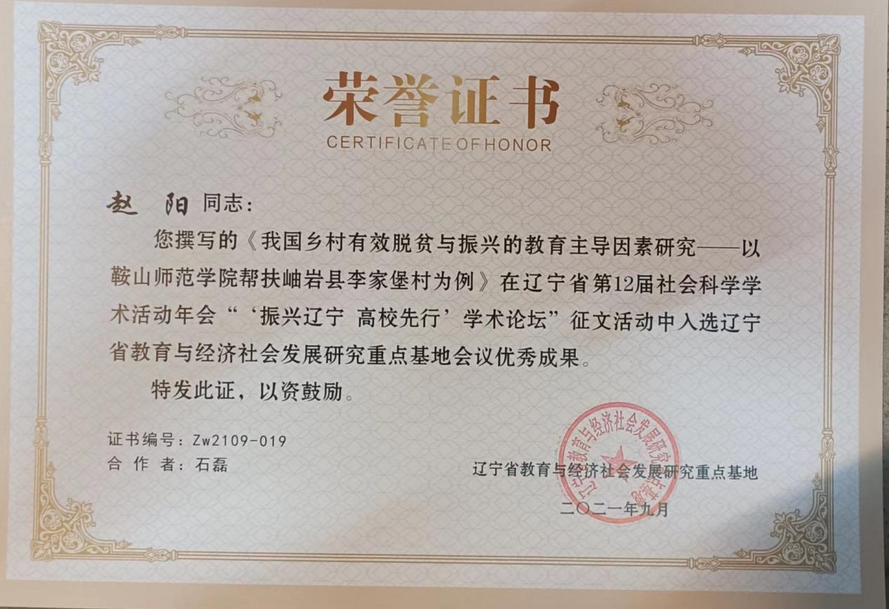 高校先行’学术论坛”征文活动中入选辽宁省教育与经济社会发展研究重点基地会议优秀成果
